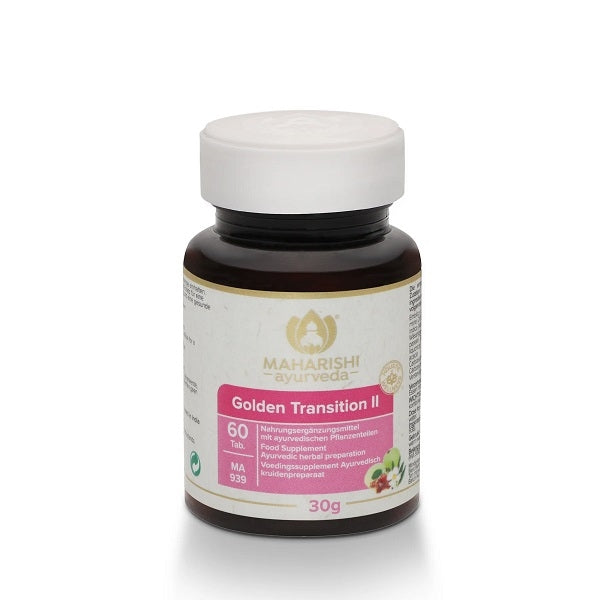 Die klassischen Texte des Ayurveda gehen davon aus, dass während der Wechseljahre Veränderungen im Stoffwechsel auftreten, die hauptsächlich auf eine Zunahme von Vata und eine Abnahme von Pitta zurückzuführen sind. Diese Nahrungsergänzung soll die Versorgung mit Substanzen gewährleisten, die erforderlich sind, um ein inneres Gleichgewicht während der Wechseljahre sicherzustellen. Golden Transition I und II werden zusammen empfohlen, da sie sich gegenseitig ergänzen und verstärken.